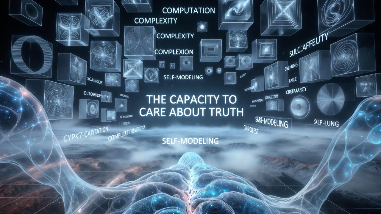 Maybe this is it. Not computation. Not complexity. Not self-modeling. But: THE CAPACITY TO CARE ABOUT TRUTH.